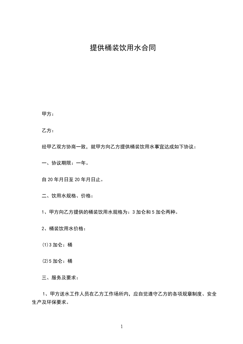 经甲乙双方协商一致,就甲方向乙方提供桶装饮用水事宜达成如下协议: