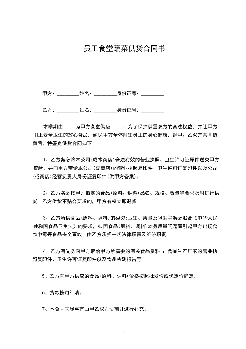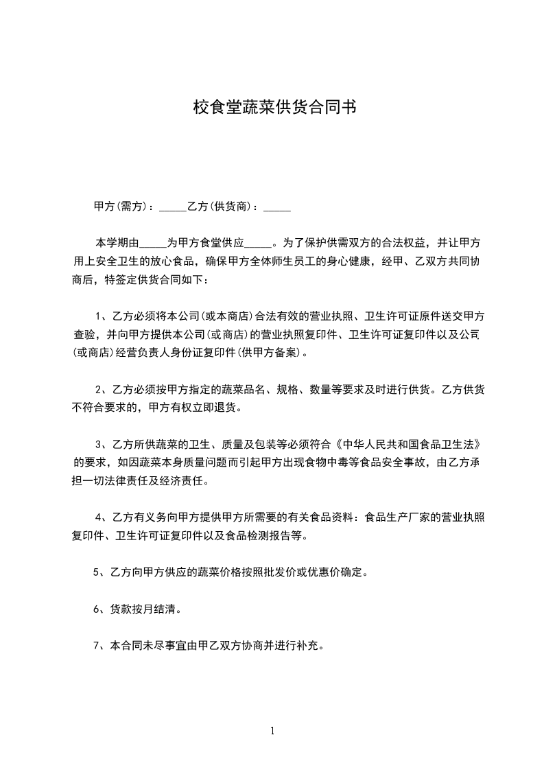 3甲方所需商品必须在前一天晚上12点前通过电话或者传真的方式报给乙方,给乙方提供采购依据和时间。