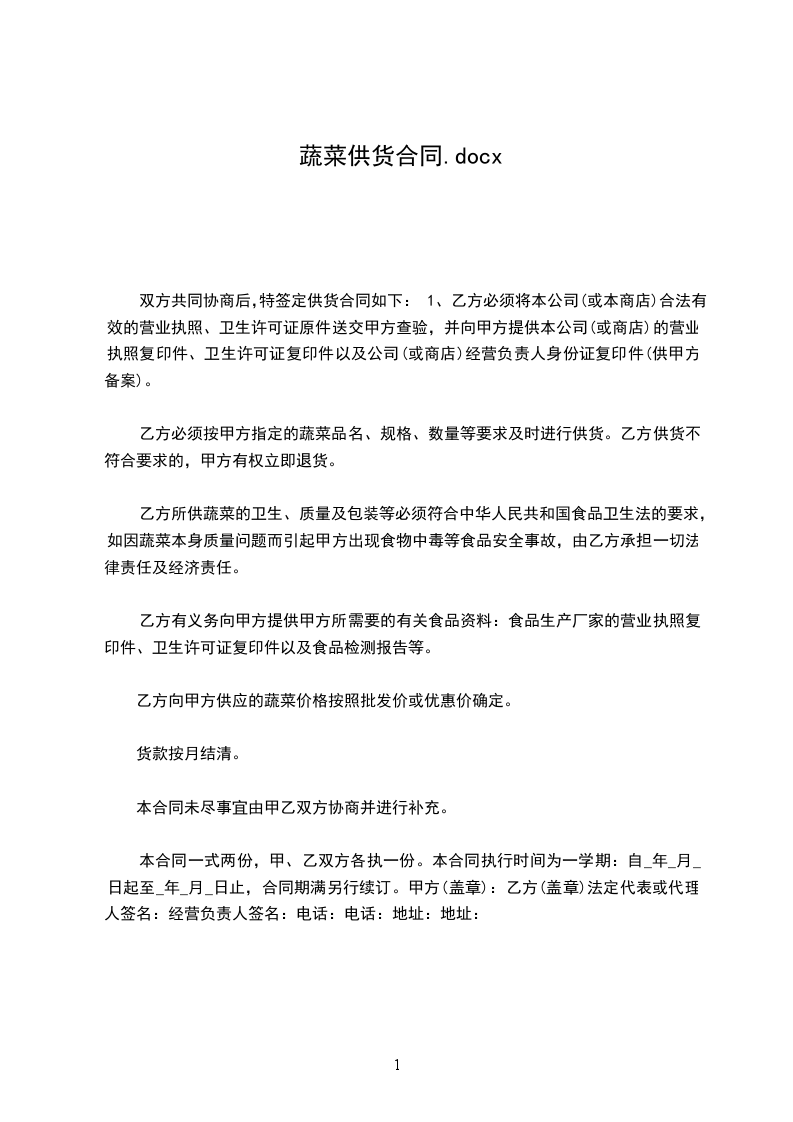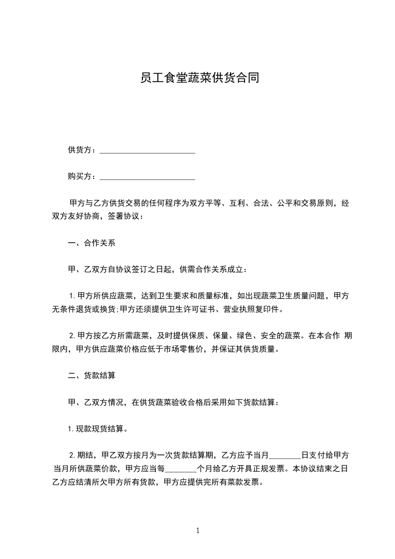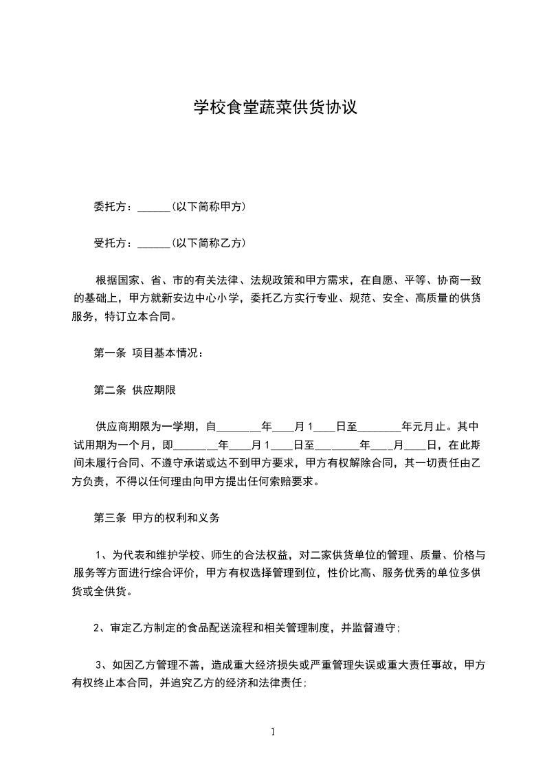 2供货期限:自__年__月__日至__年__月__日,在合作期间双方应本着自愿、公平、互惠互利的原则合作。