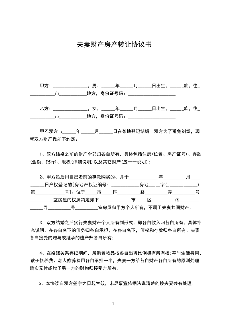 1、双方结婚之前的财产全部归各自所有,具体包括住房(位置、房产证号)、存款(金额,银行)、股权(详细说明)以及其它财产(应一一说明);