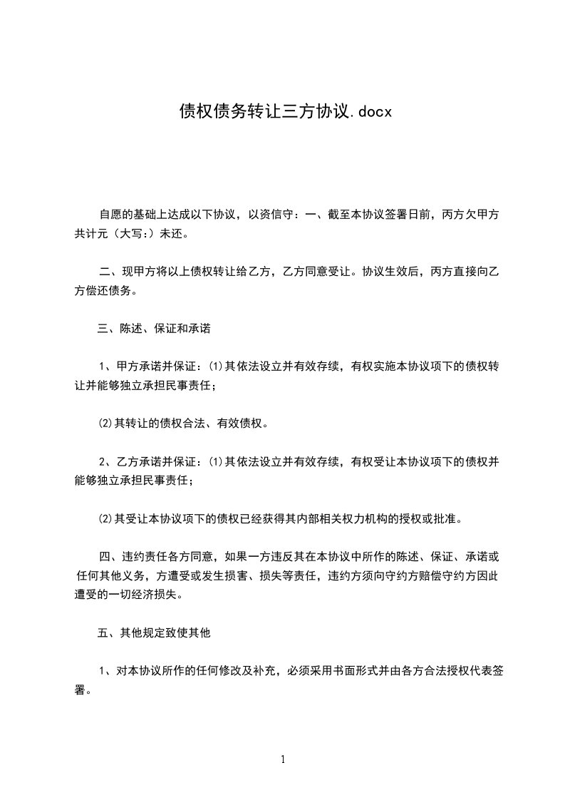 1.1乙方同意按本协议的条款和条件向甲方转让债权,甲方同意按本协议的条款和条件从乙方受让债权。
