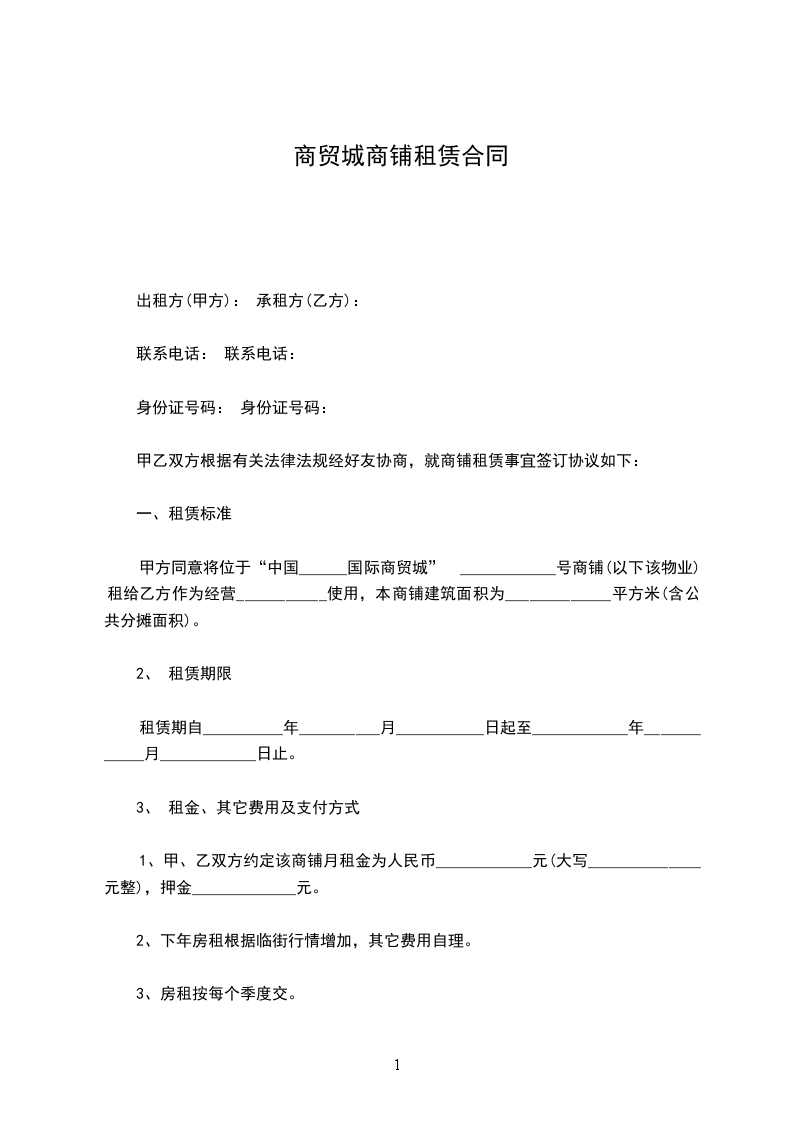 第一条:租赁房屋坐落地址及商铺面积商铺坐落地址:________________________.商铺面积约______平方米。