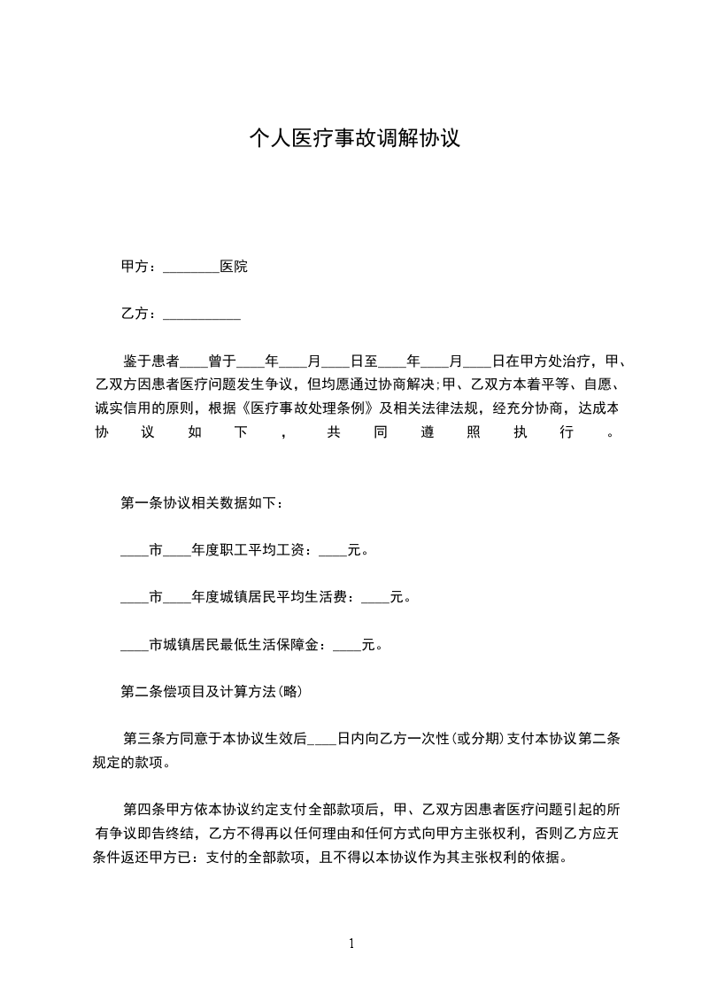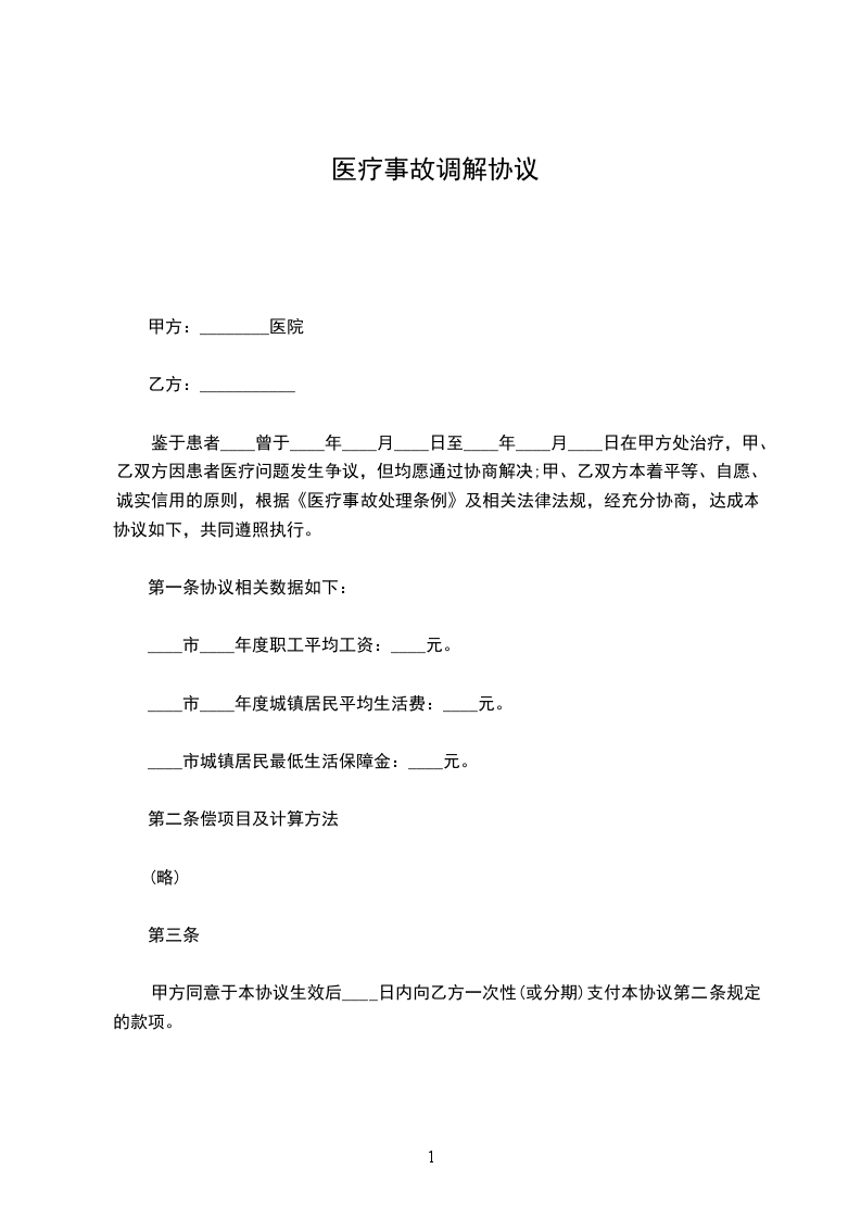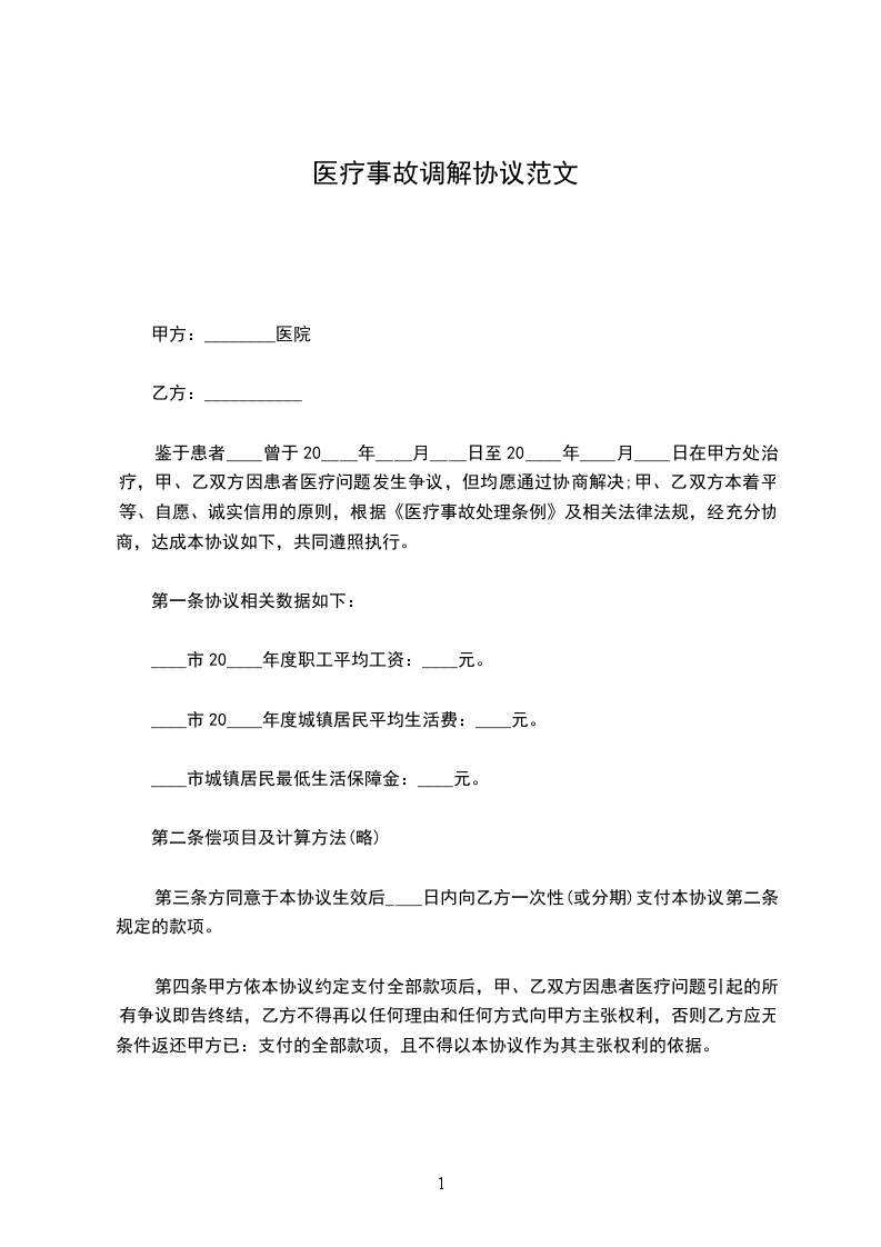 甲乙双方根据《医疗事故处理条例》之规定,经协商,在完全自愿的情况下达成如下协议:
