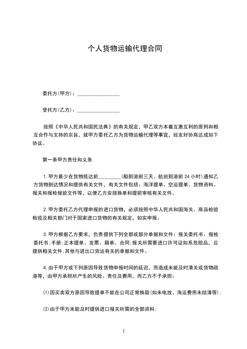 按照《中华人民共和国民法典》的有关规定,甲乙双方本着互惠互利的原则和相互合作与支持的宗旨,就甲方委托乙方为货物运输代理等事宜,经友好协商达成如下协议。