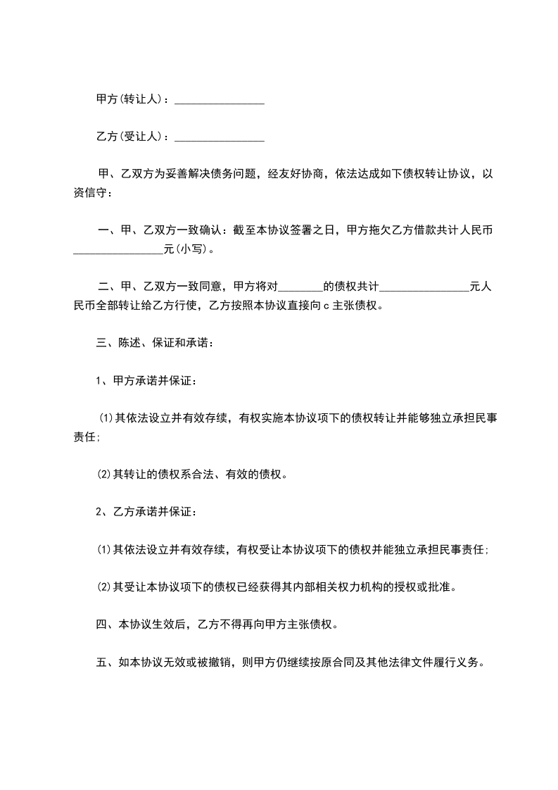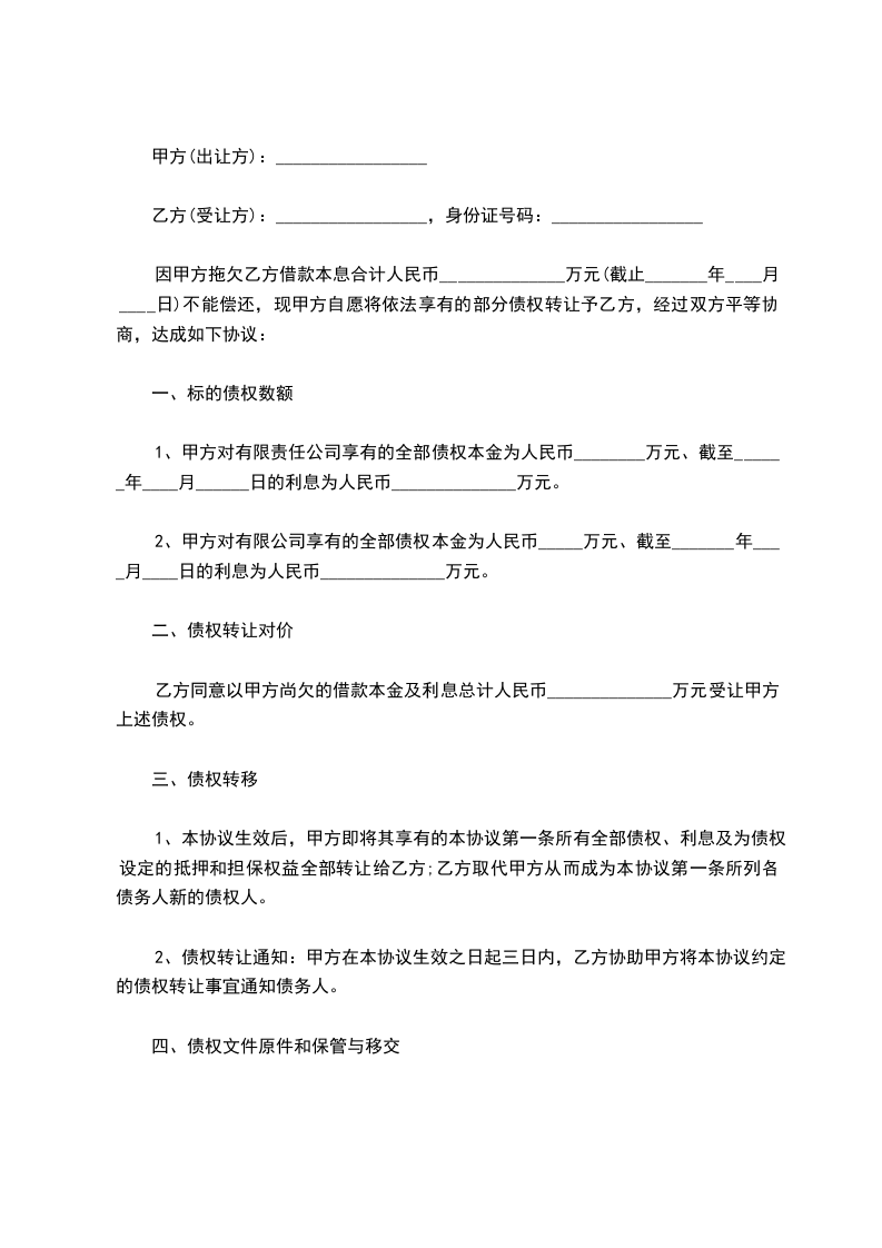 1._____年_____月_____日,本合同乙方与丙方签订《债权转让协议》(以下简称“主合同”,详见附件1),约定乙方向丙方转让不良资产,丙方应向乙方支付合同价款为