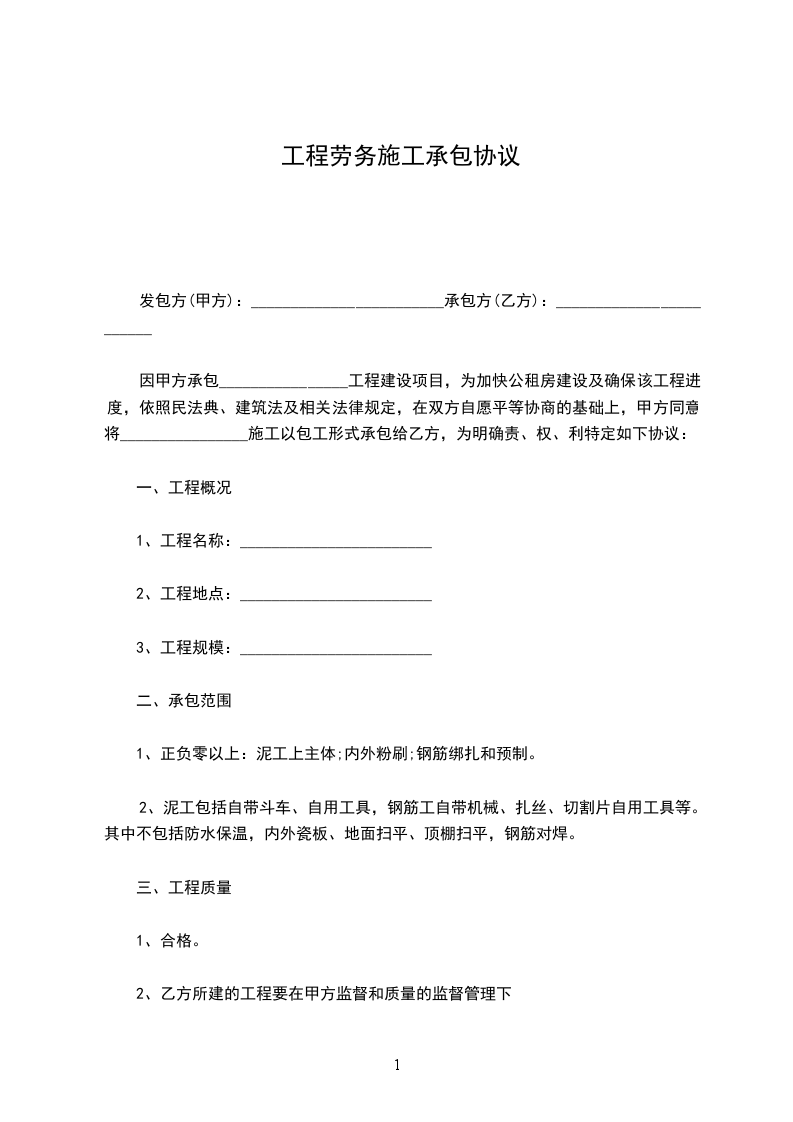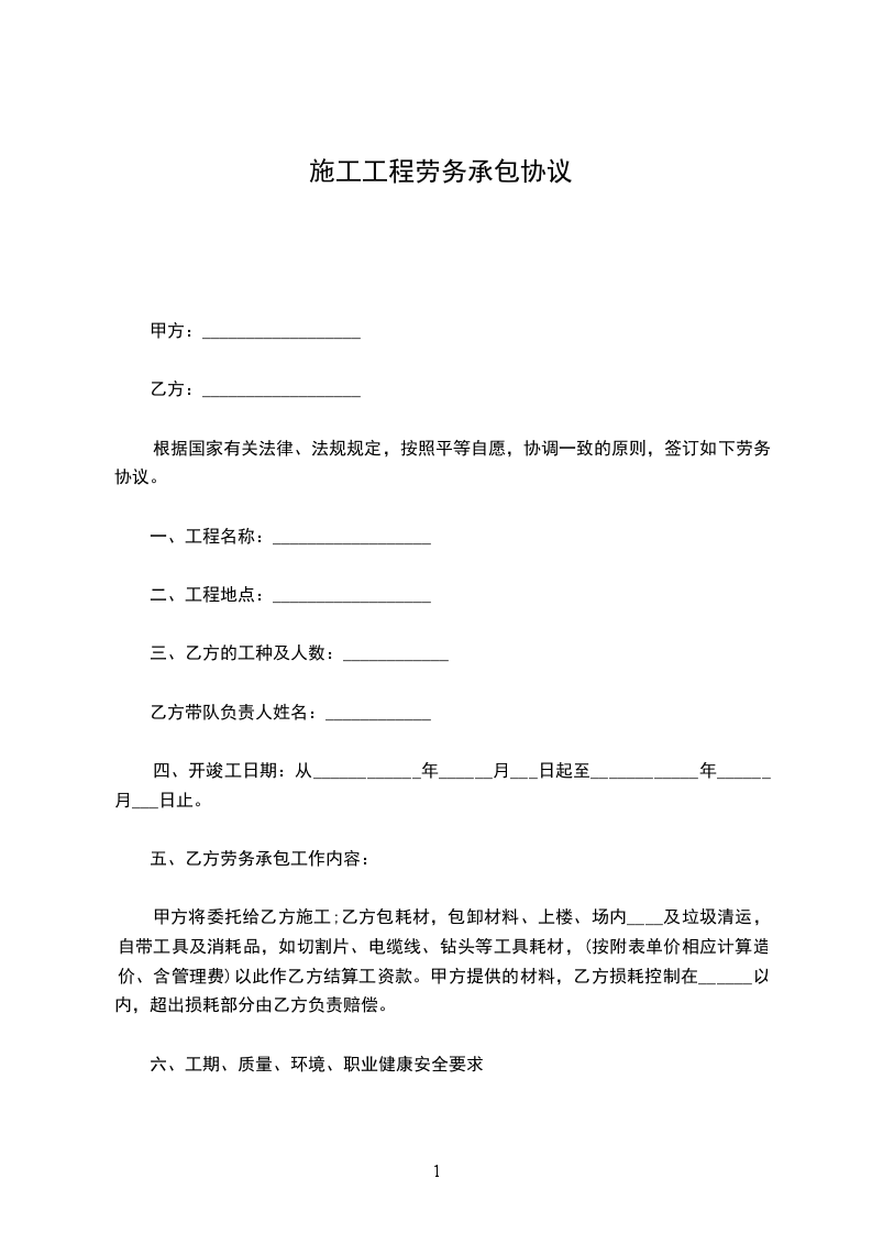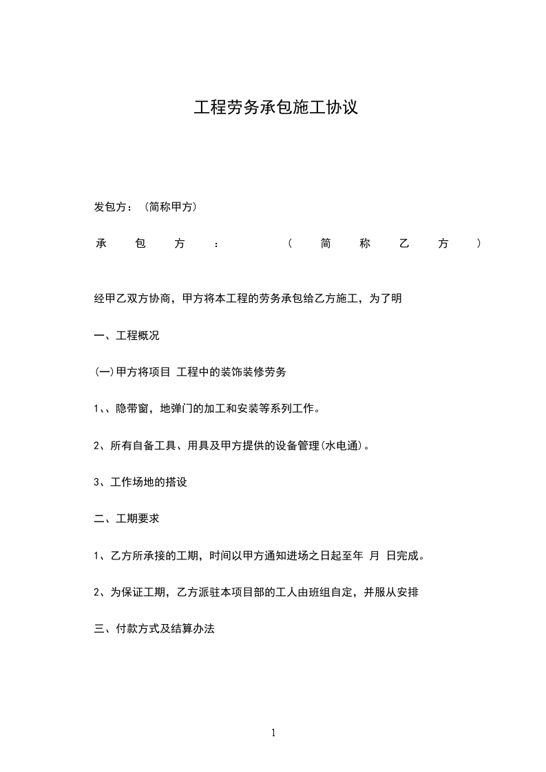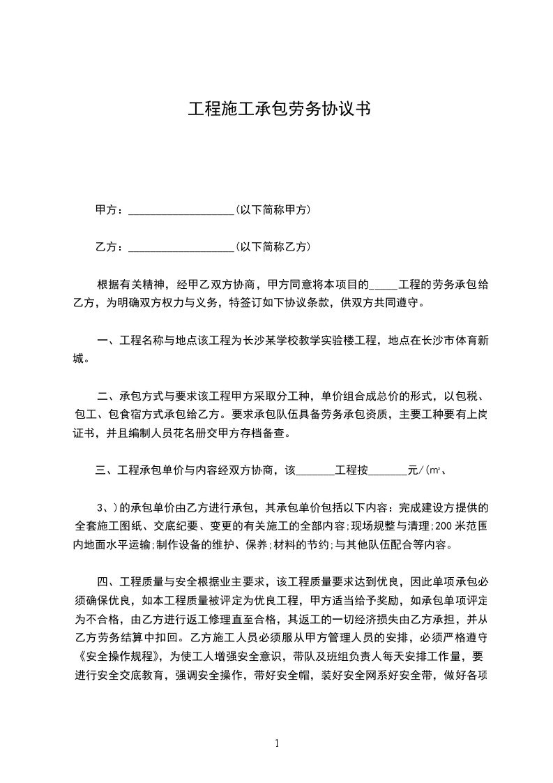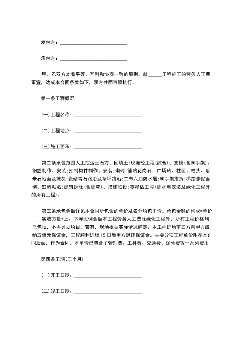 甲、乙双方本着平等、互利和协商一致的原则,就____________工程施工的劳务人工费事宜,达成本合同条款如下,双方共同遵照执行。