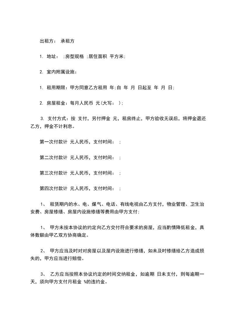 2. 房屋租金:每月人民币 元(大写: );