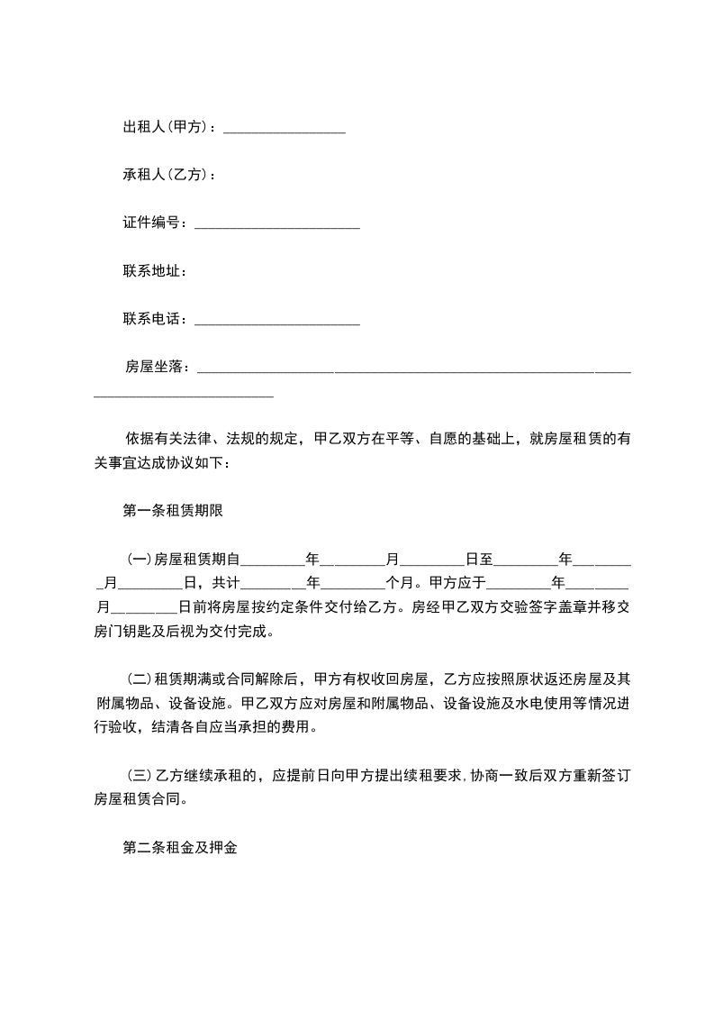 第二条租金及押金