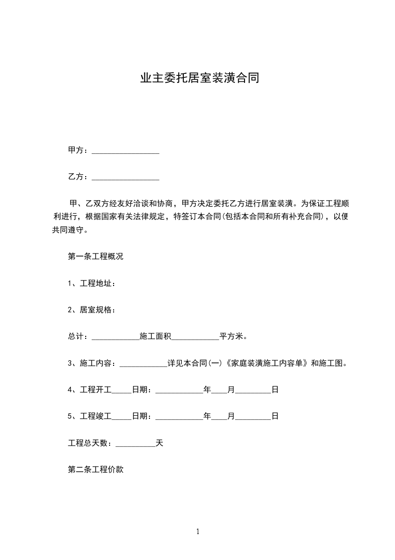 甲、乙双方经过多次友好洽谈和协商,现甲方决定将居室装潢权委托给乙方。为了保证工程顺利的进行,根据国家有关法律规定,特签订本合同(包括本合同附件和所有补充合同),以便共同遵守。