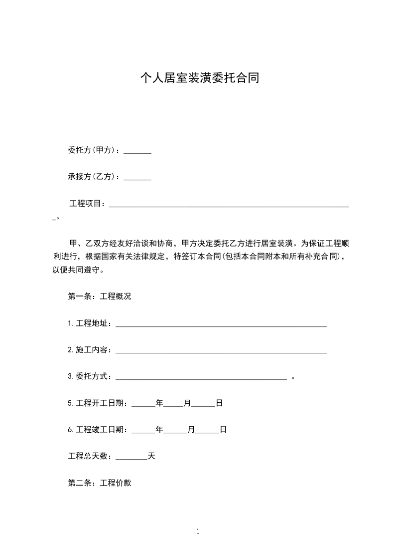 工程项目:居室装潢