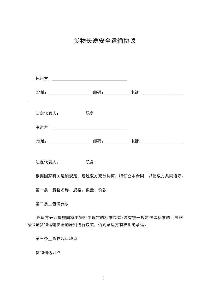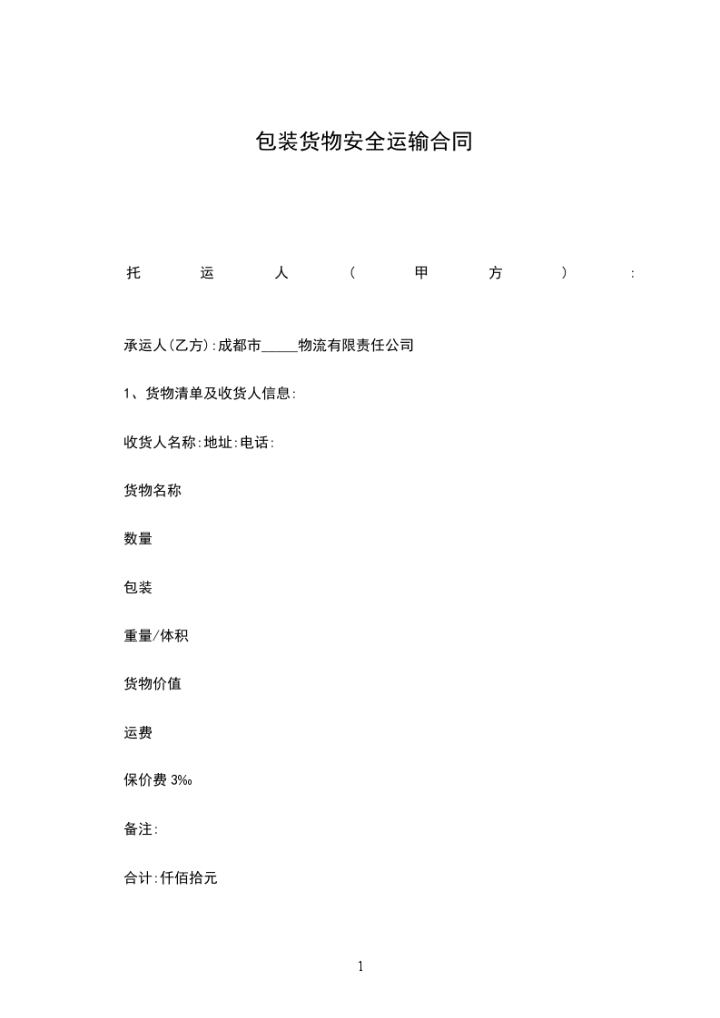第一条 货物名称:_________;规格:_________;数量:_________;单价:_________总(元)_________.