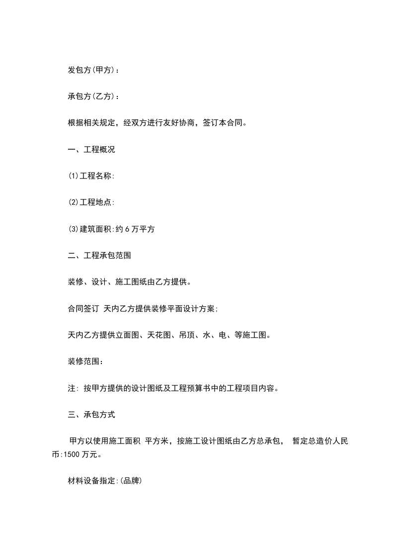 甲方以使用施工面积 平方米,按施工设计图纸由乙方总承包, 暂定总造价人民币:1500万元。