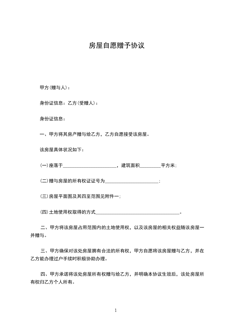 三、甲方确保对该处房屋拥有合法的所有权,甲方自愿将该房屋赠与乙方,并在乙方能办理过户手续时积极协助办理。