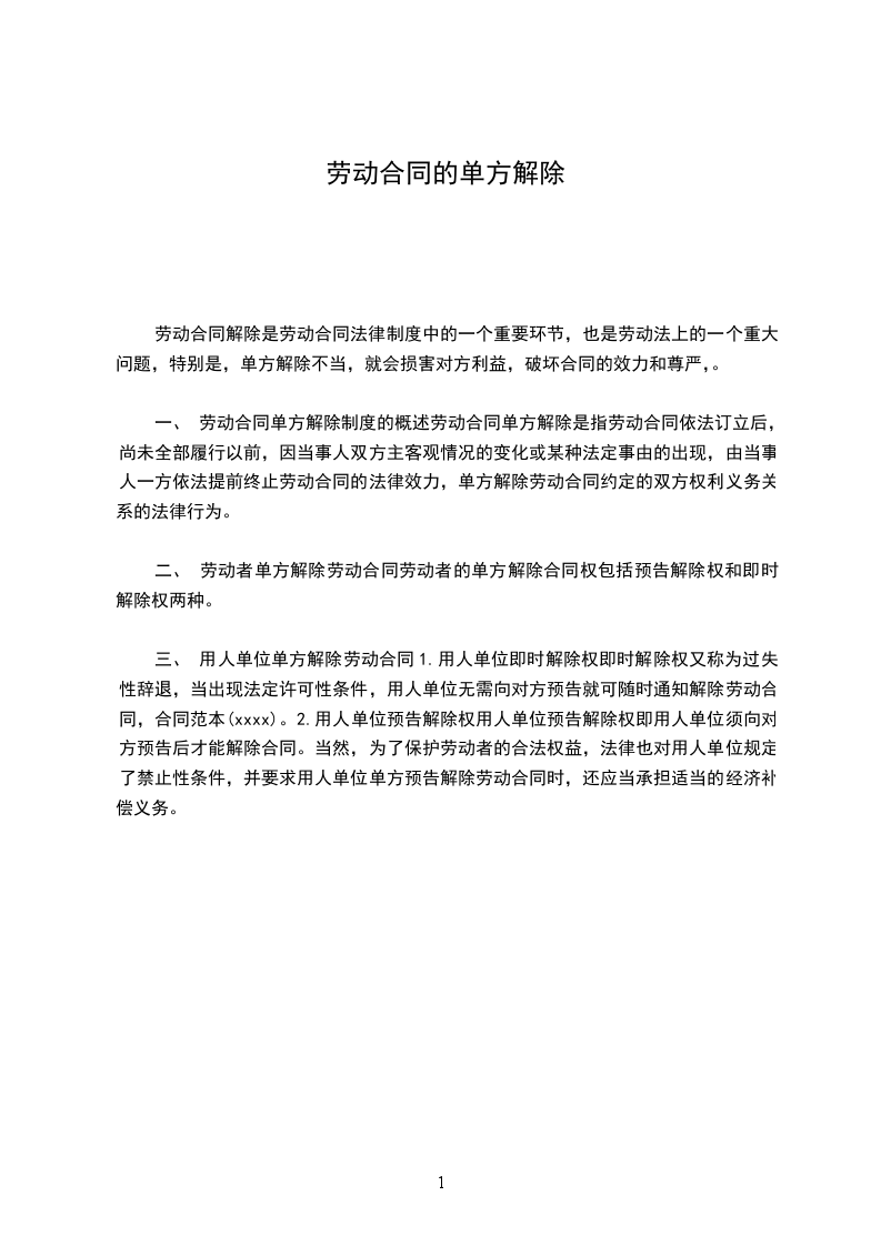 一、解除劳动合同的日期为:______年____月____日;