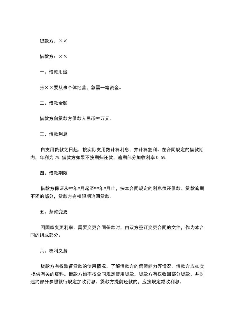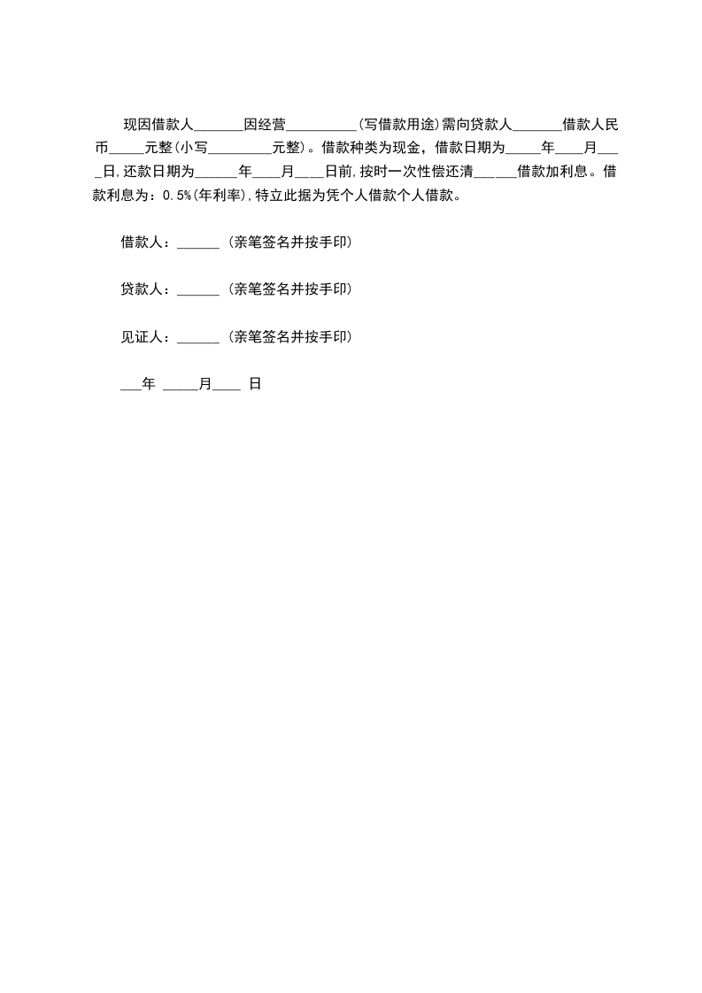 立合同人:__________________(以下简称甲方)________________(以下简称乙方),双方兹因借款事宜,订立本件契约,条款如下: