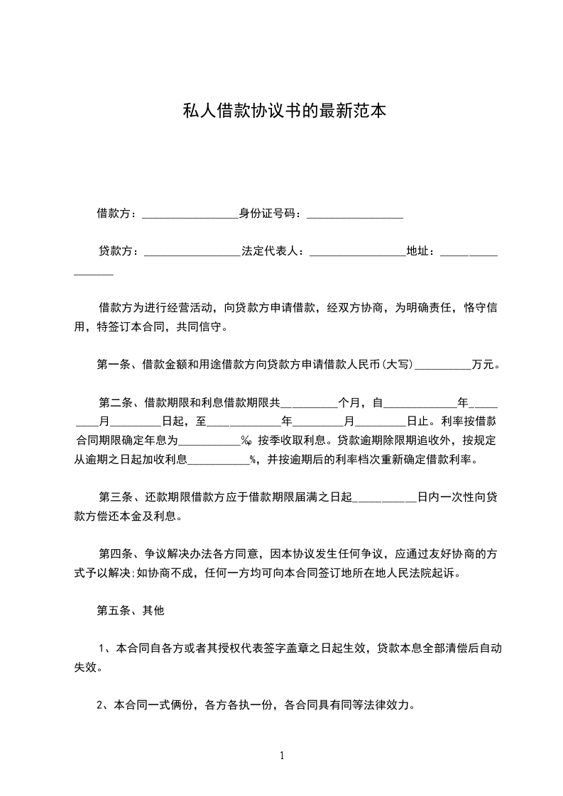 一、甲方愿贷与乙方人民币__________元整,于订立本约之同时,由甲方给付乙方,不另立据。