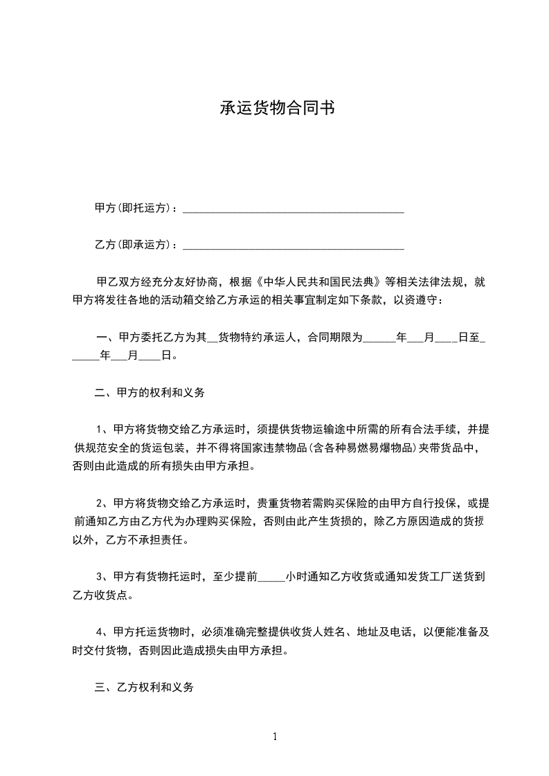 (1)货物发送期间为1日。