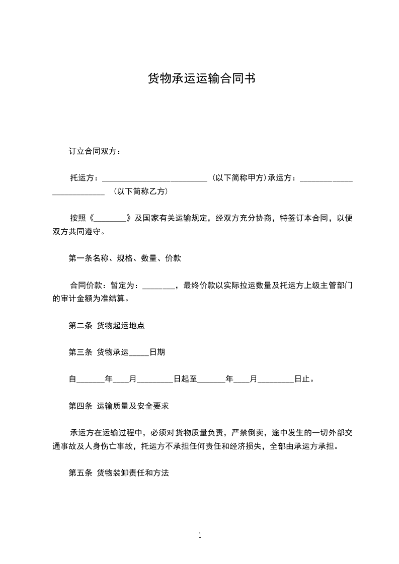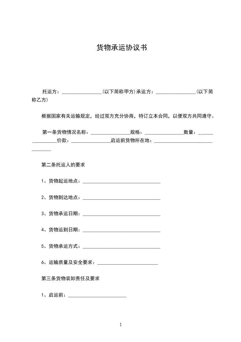 (一)铁路货运合同主要条款