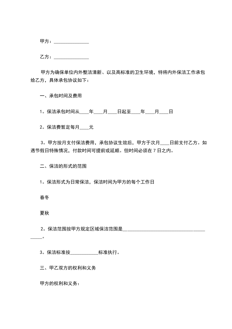 1.保洁承包时间从____年____月____日起至____年____月____日
