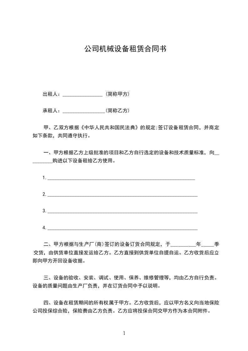 甲、乙双方根据《中华人民共和国民法典》的规定;签订设备租赁合同,并商定如下条款,共同遵守执行。