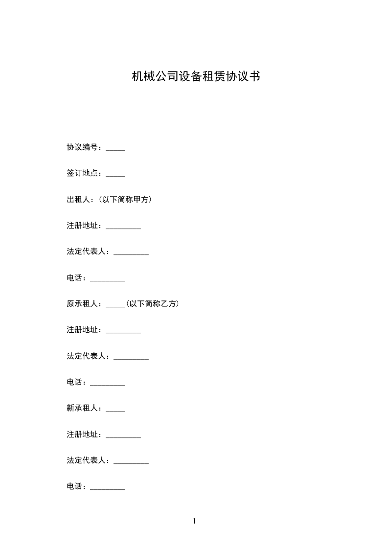 六、设备租赁期限为_____年,租期从供货厂向甲方托收贷款时算起,租金总额为人民币 __________元(包括手续费 _____ %),分_____期交付,每期租赁金_____元,由甲方在每期期末按期向乙方托所如乙方不能按期承付租金,甲方则按逾期租金总额每天加收万分之三的罚金。