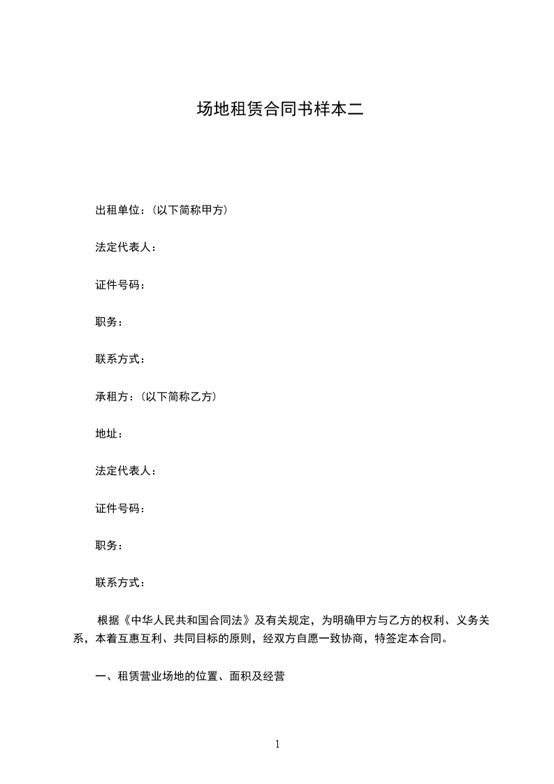 一、租赁营业场地的位置、面积及经营