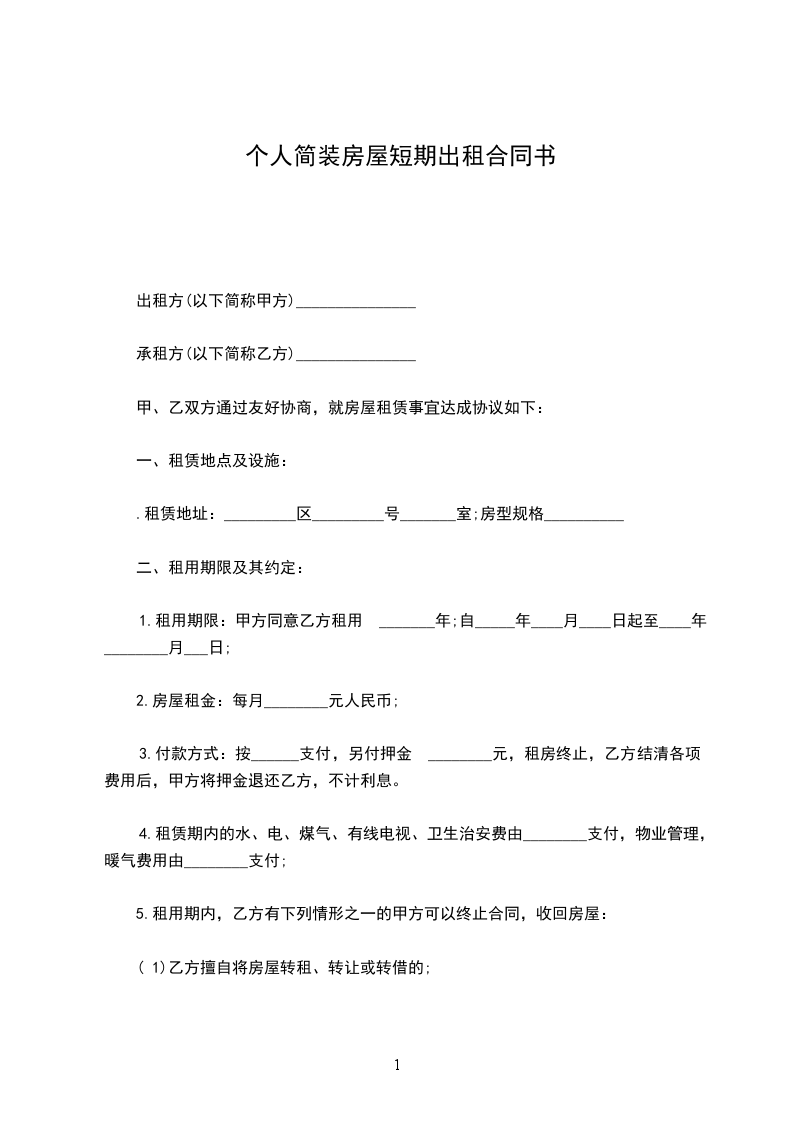 出租方(以下简称甲方)_______________