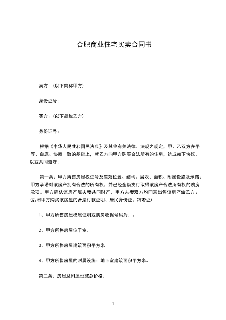 根据《中华人民共和国民法典》及其他有关法律、法规之规定,甲、乙双方在平等、自愿、协商一致的基础上,就乙方向甲方购买合法所有的住房,达成如下协议,以兹共同遵守: