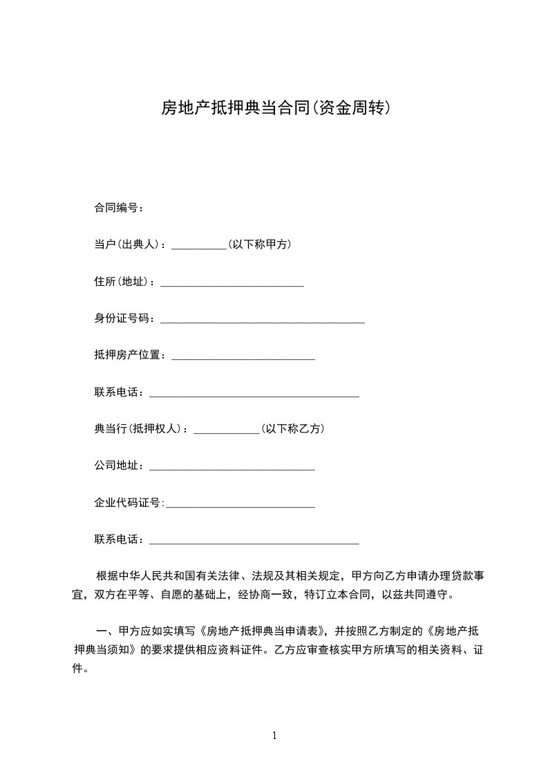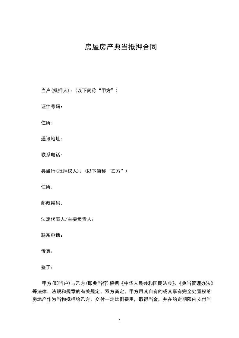 甲方(即当户)与乙方(即典当行)根据《中华人民共和国民法典》、《典当管理办法》等法律、法规和规章的有关规定,双方商定,甲方用其自有的或其享有完全处置权的房地产作为当物抵押给乙方,交付一定比例费用,取得当金,并在约定期限内支付当金利息,偿还当金,赎回当物;乙方在对当物进行审查、评估并同意收当后将在该当物办理抵押登记后一定期限内支付甲方当金并收取一定比例费用。双方同意,该抵押房地产作为甲方向乙方偿还本合同项下全部债务的担保。双方共同认可,抵押担保的甲方所欠乙方之债范围包括:当金本息、典当综合费用、违约金(如有)、实现抵押权所支付的相关费用(包括但不限于律师费、公证费、执行费、拍卖费等)以及所有其它应付款项。