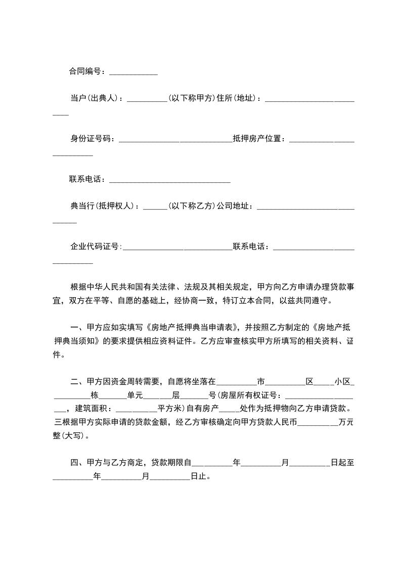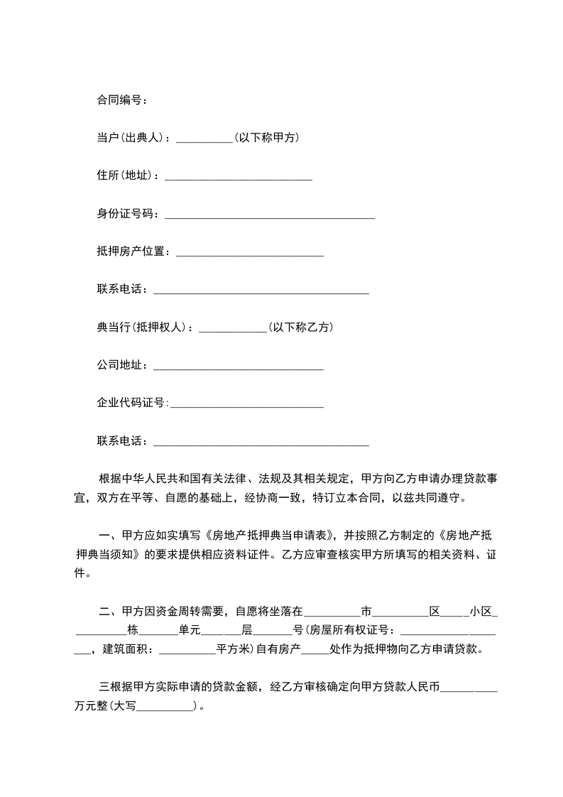 2、甲、乙双方确认,抵押典当房地产评估价值为:¥______,人民币______(大写)。