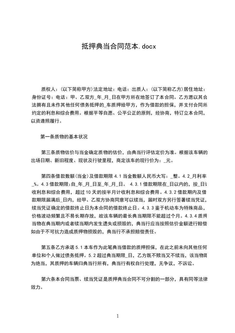 5、甲方于典当期限届满5日后既不赎当也不续当的视为绝当。