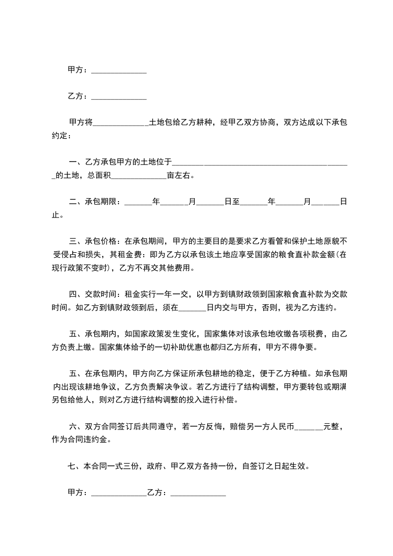 七、以上条款应双方遵守,单方违约每亩罚金____。