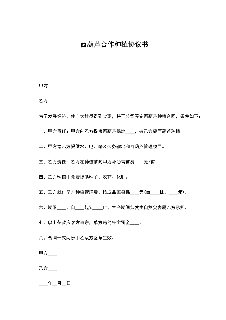 一、甲方责任:甲方向乙方提供西葫芦基地____,有乙方搞西葫芦种植。