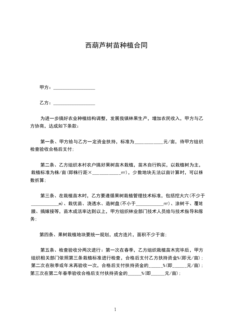 三、乙方责任:乙方在种植前向甲方补助青苗费____元/亩。