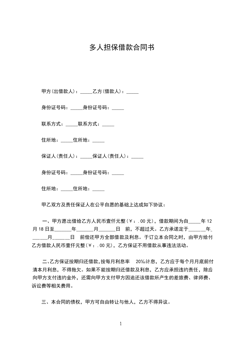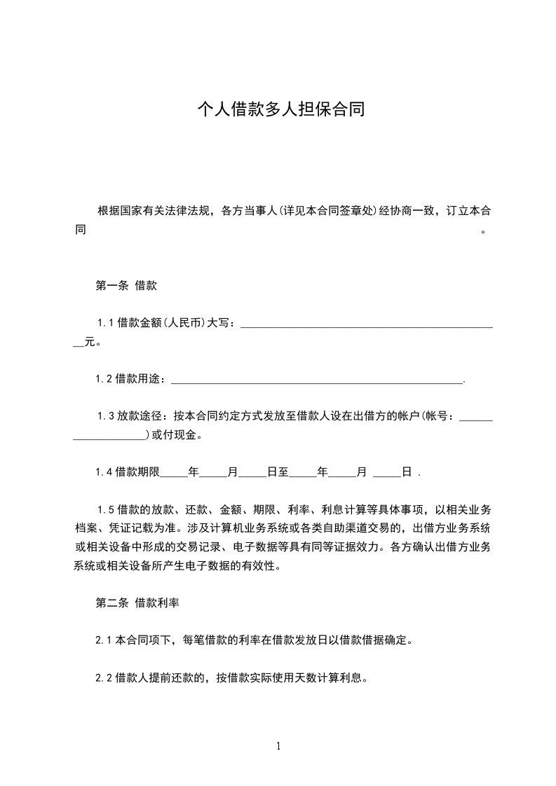 本合同自签字或者盖章之日起生效,一式_____份,其中出借方壹份,借款人壹 份,担保人各壹 份(由联保小组担保的,借款人和全体担保人共持壹份合同,指定借款人保管),各份效力相同。
