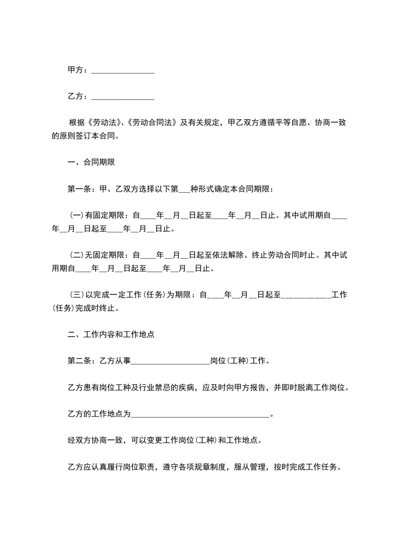 第一条:甲、乙双方选择以下第___种形式确定本合同期限: