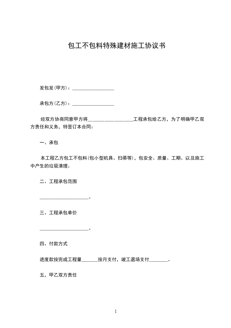 本工程乙方包工不包料(包小型机具、扫帚等),包安全、质量、工期、以及施工中产生的垃圾清理。