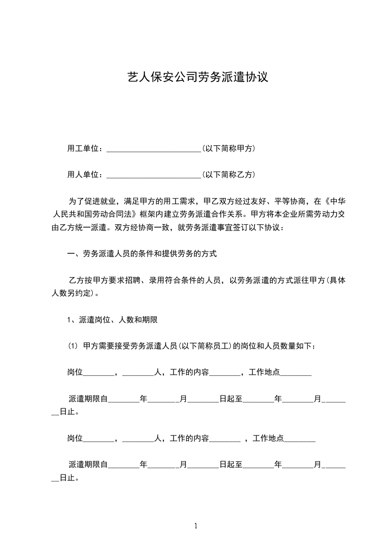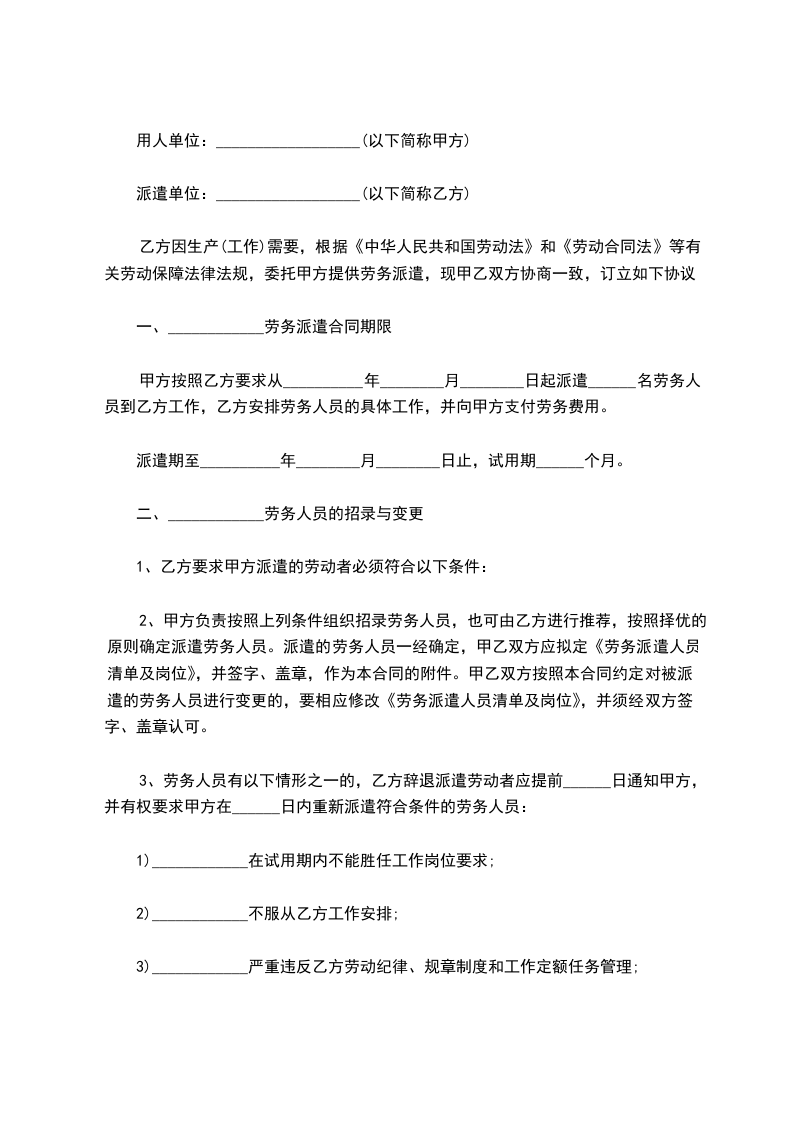 派遣单位:__________________(以下简称乙方)