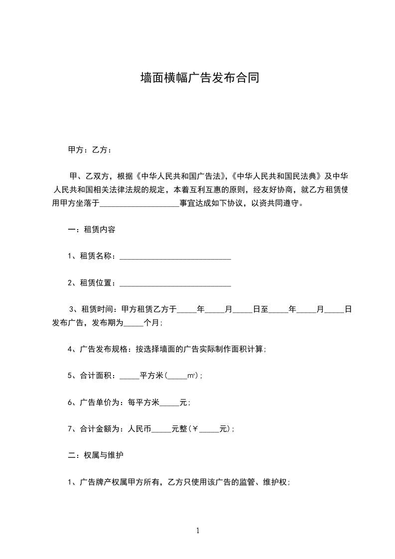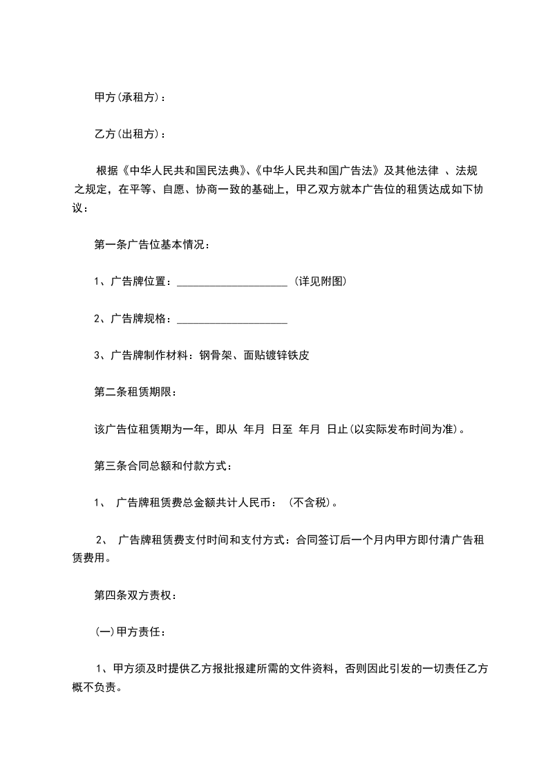 1.2广告的位置:具体位置由乙方指定。