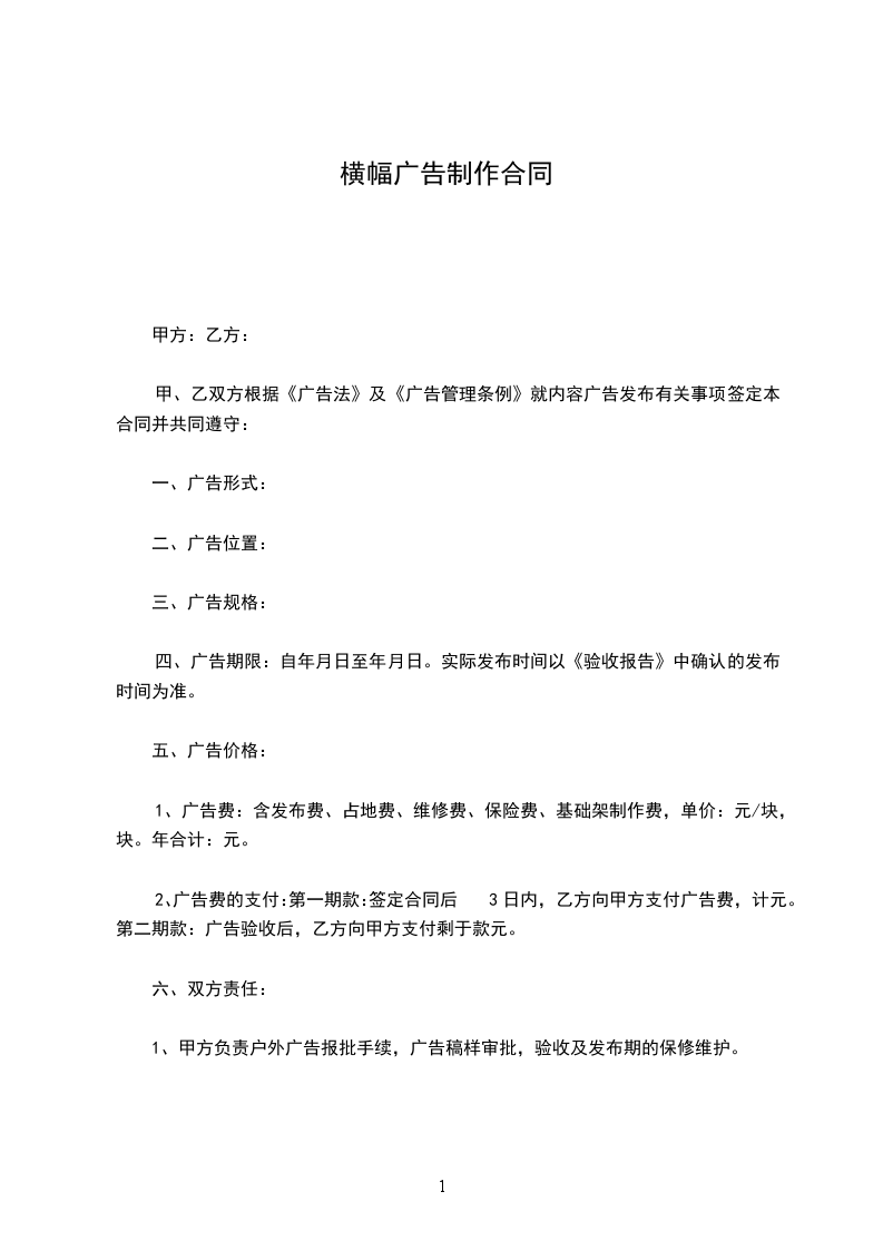户外横幅广告制作安装合同