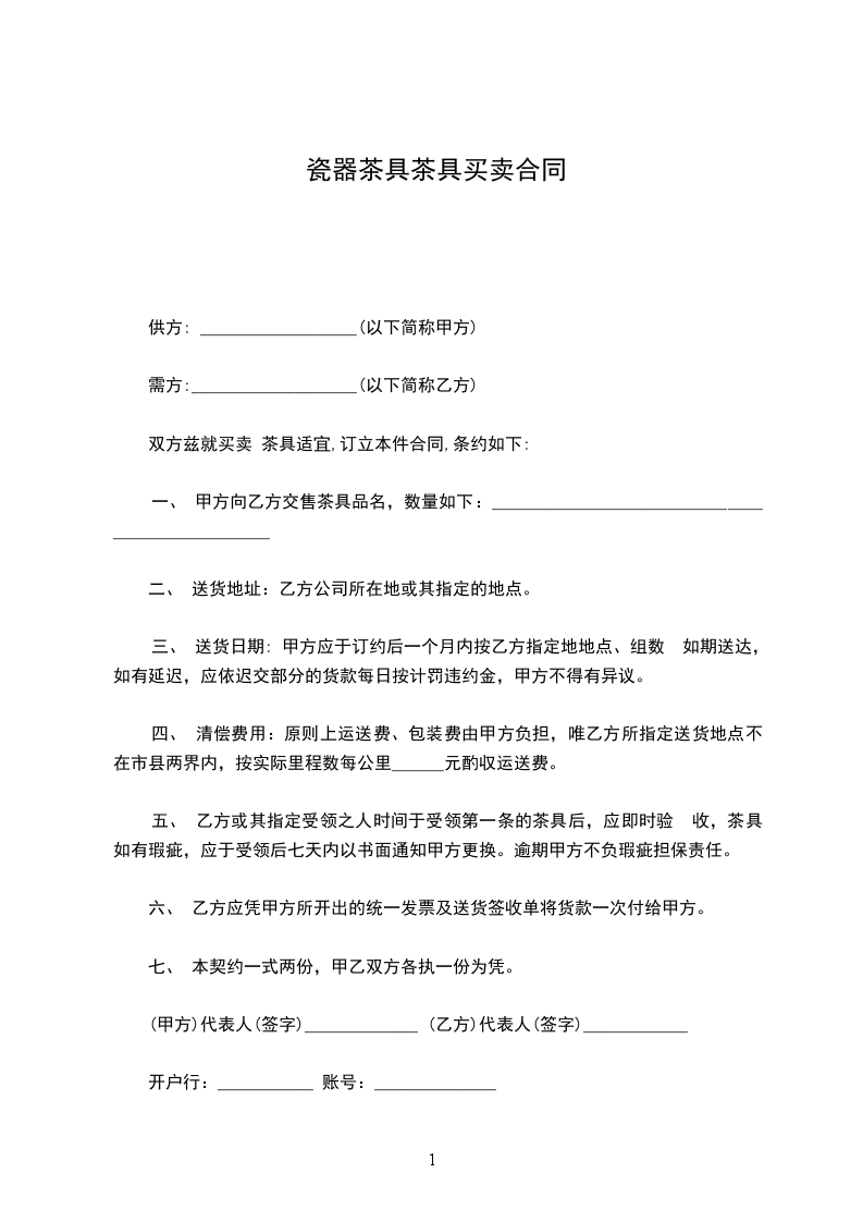 双方兹就买卖 茶具适宜,订立本件合同,条约如下: