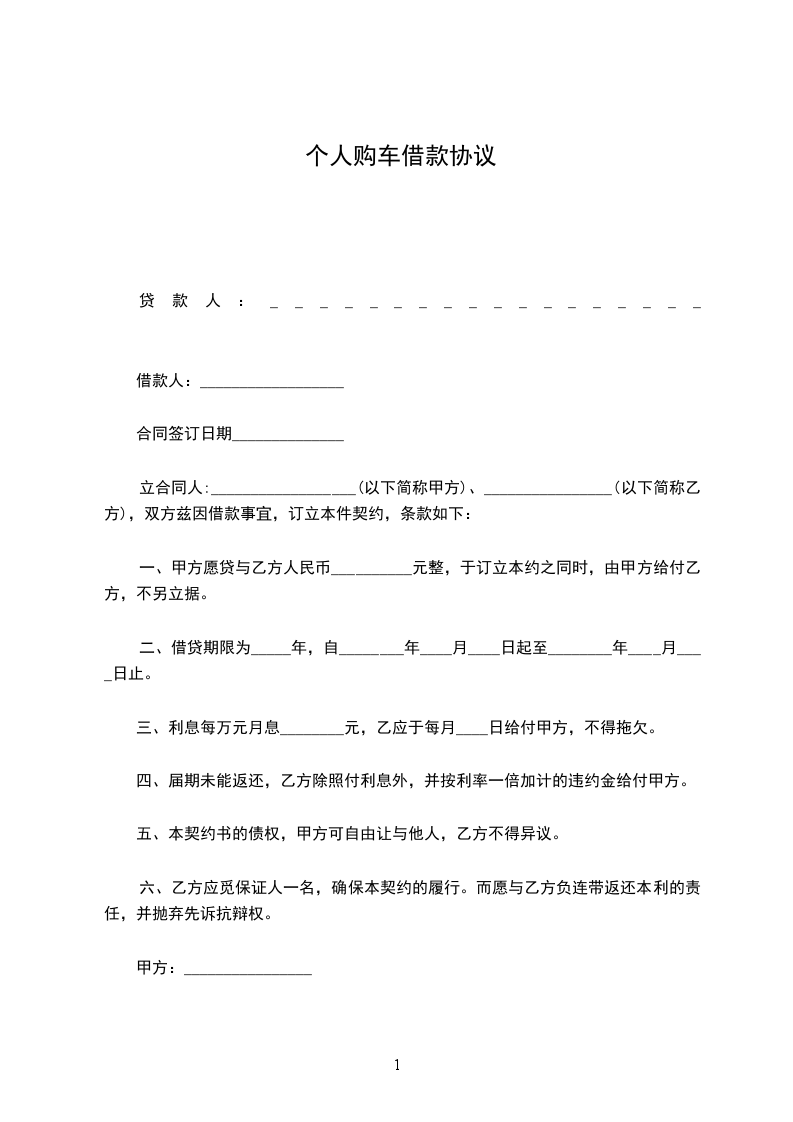 一、甲方愿贷与乙方人民币__________元整,于订立本约之同时,由甲方给付乙方,不另立据。