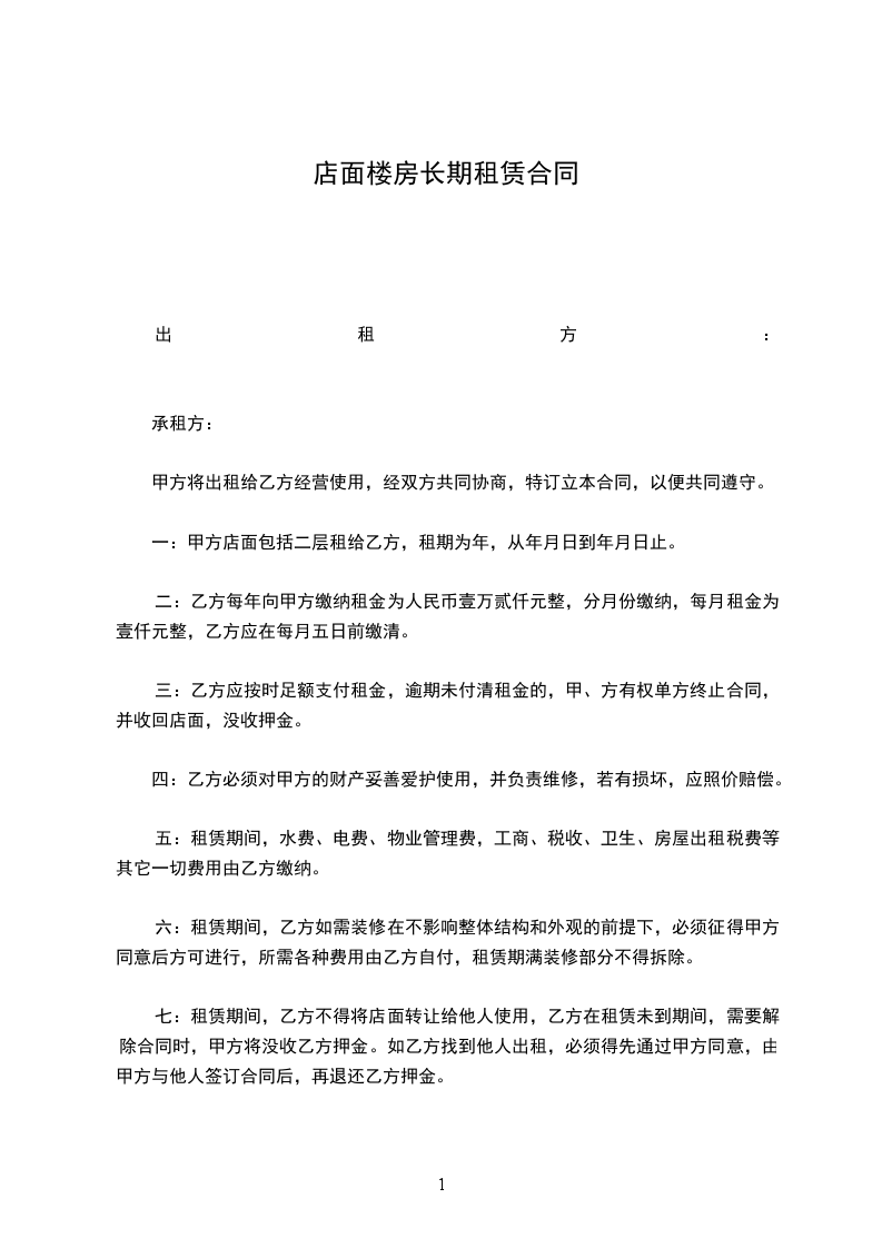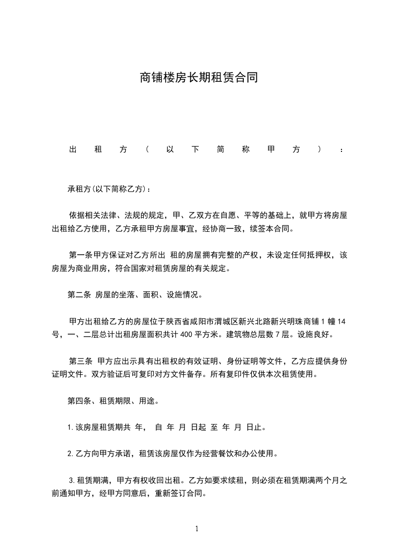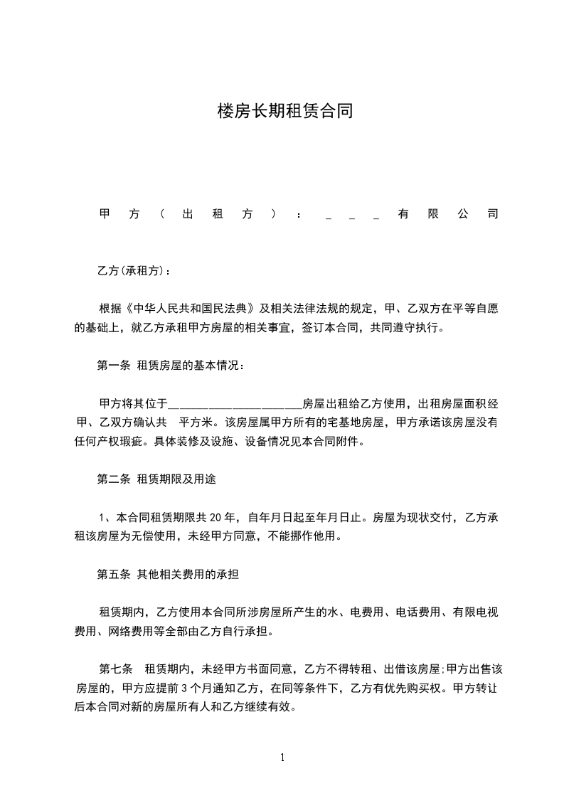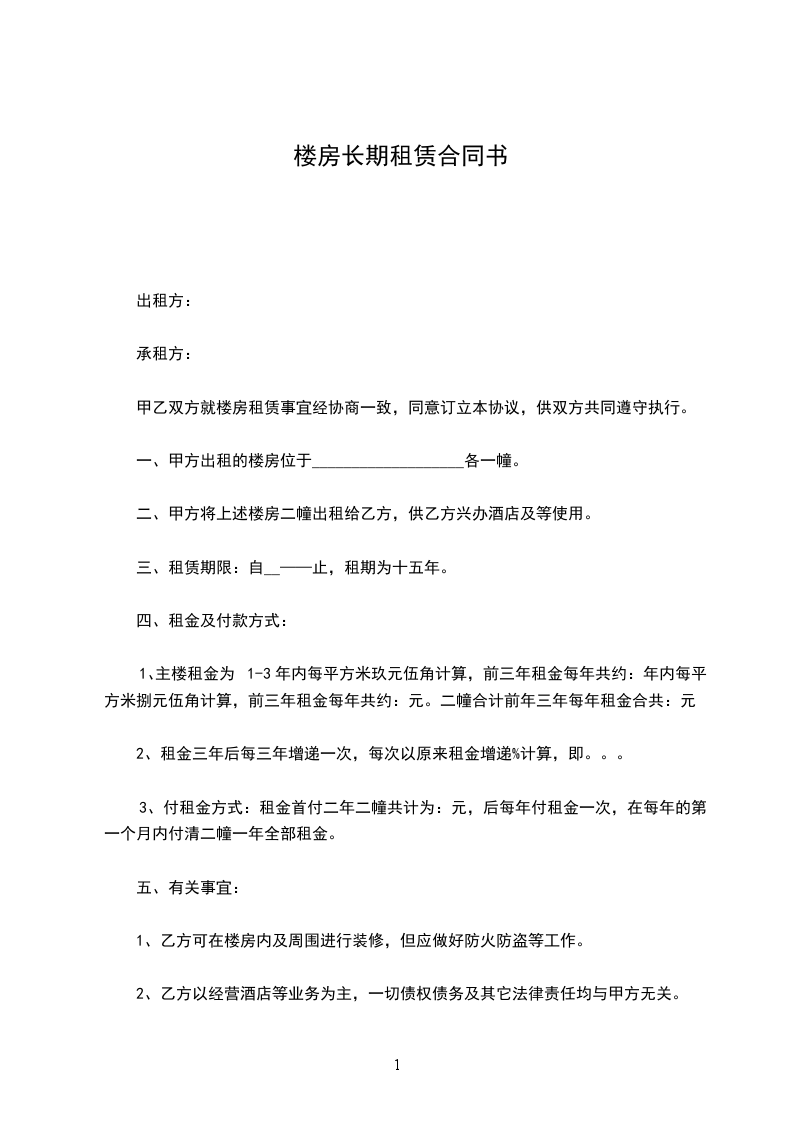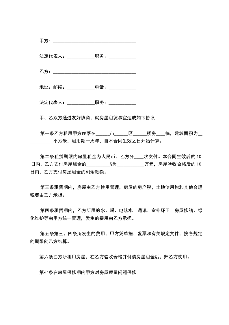1.甲方将位于 楼房以 整房年租 形式出租给乙方使用。