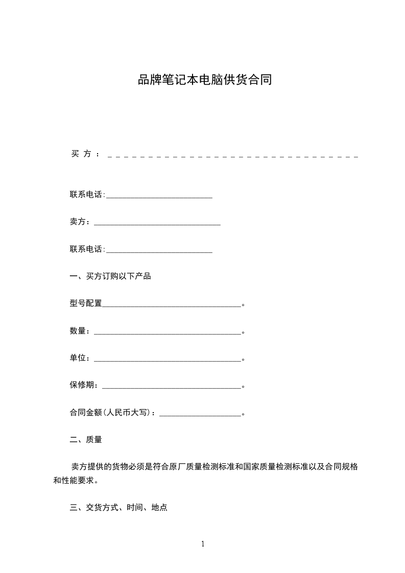 2、单次供货量10台以上,甲方向乙方支付预付款 ;乙方在甲乙双方约定的时间、地点把合同规定的货物交付甲方后,甲方在活动期结束后向乙