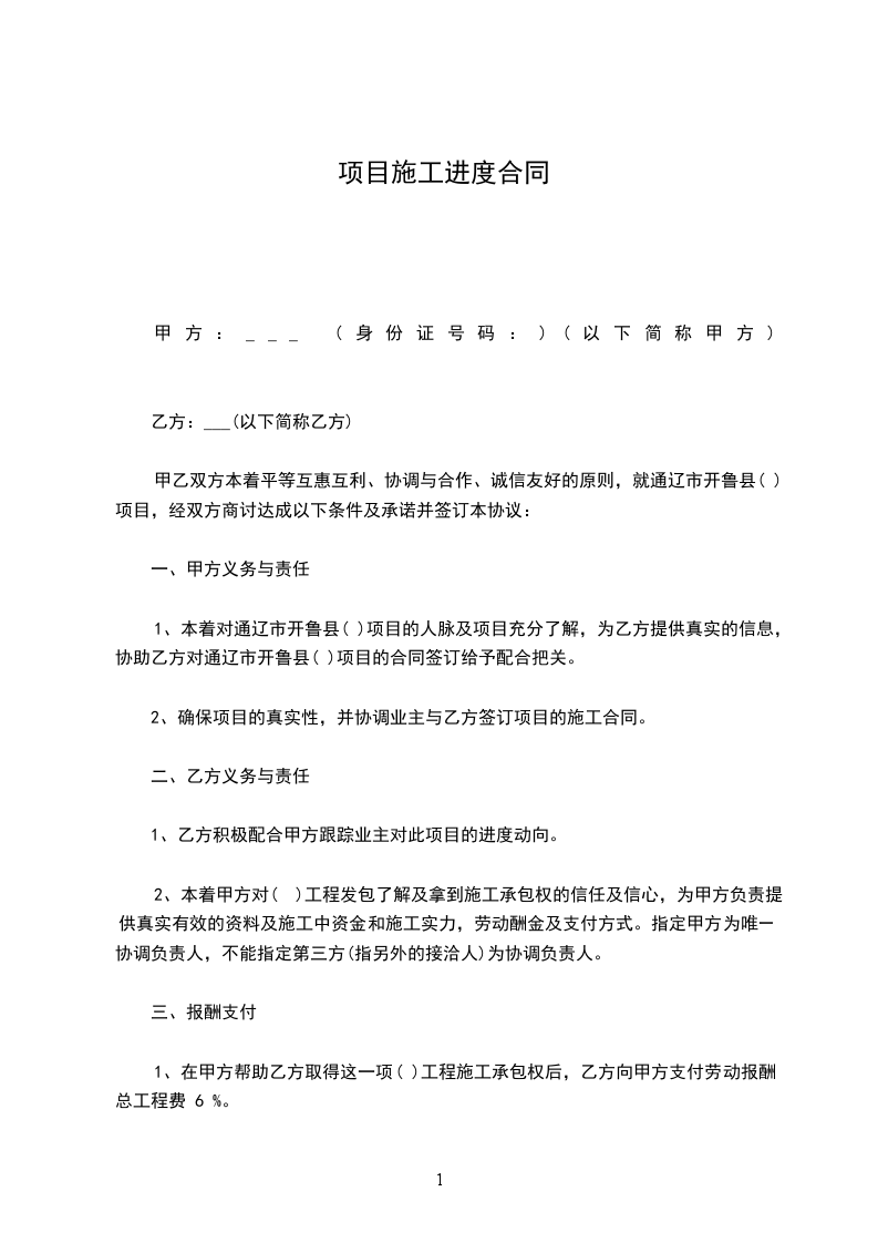 1、本着对通辽市开鲁县( )项目的人脉及项目充分了解,为乙方提供真实的信息,协助乙方对通辽市开鲁县( )项目的合同签订给予配合把关。
