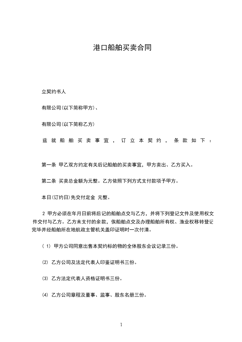 兹就船舶买卖事宜,订立本契约,条款如下: