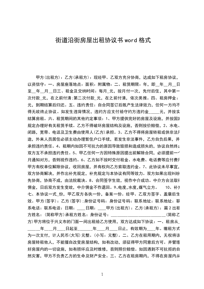 3.经双方协商该房屋每月租金为___________元;于_____年_____月_____日乙方支付甲方_____个月的房租 _____元以及_____元的押金共计为___________元(大写______仟______佰______拾_____元整)。
