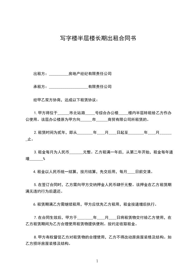 写字楼半层楼长期出租合同书