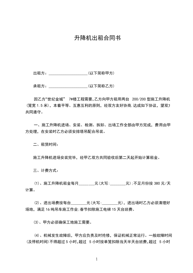 3、设备进场运费由乙方负担,出场由甲方负责送到乙方指定地点,设备进场后所产生的一切费用由甲方负责(包括按诉、保险、检测、手续费等)。