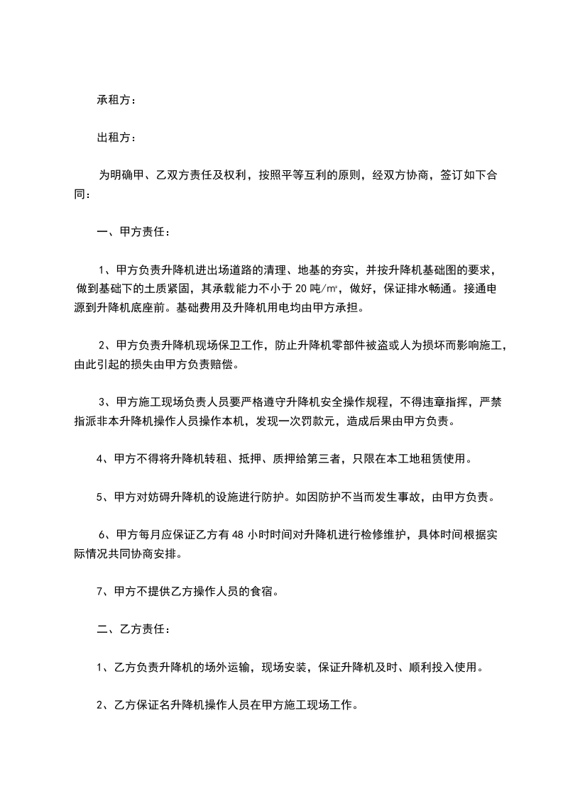 3、甲方应严格执行设备的安全技术要求和操作规程,不得强行违章指挥和违章作业,属甲方责任造成的事故由甲方负责。